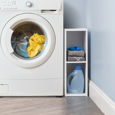 Make the most of your space with this slim shelf. Squeeze this 7 inch shelf between a wall and fridge in the kitchen, next to sink in a bathroom, or other hard to fit spaces. Shelf is adjustable in 1 inch increments. Can be stacked and connected with other units or attached to wall using included brackets. Weight Tolerance: 22 lbs. per shelf, 66 lbs. total. Assembly and Wall mount hardware included (screwdriver required). Compliant with CARB Regulation 93120 – Phase 2